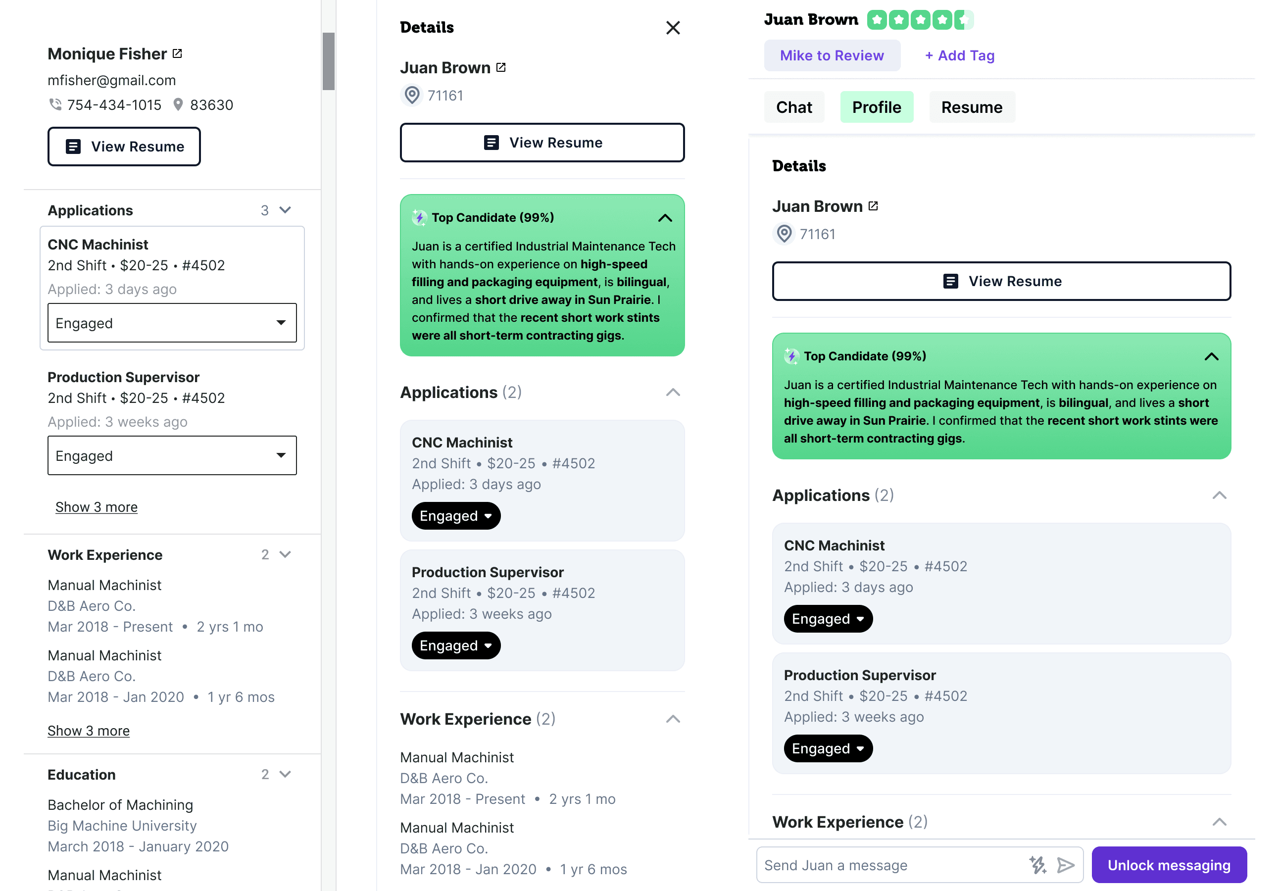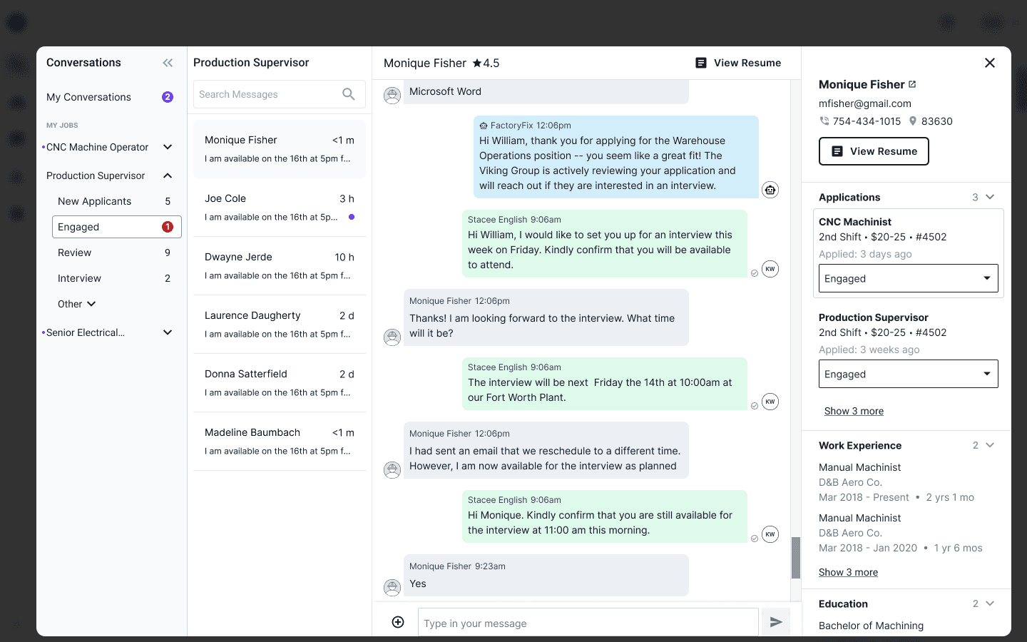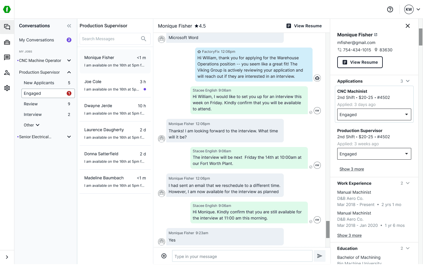 You're logged into FactoryFix in the morning, it's time to review all your CNC Machinist candidates.